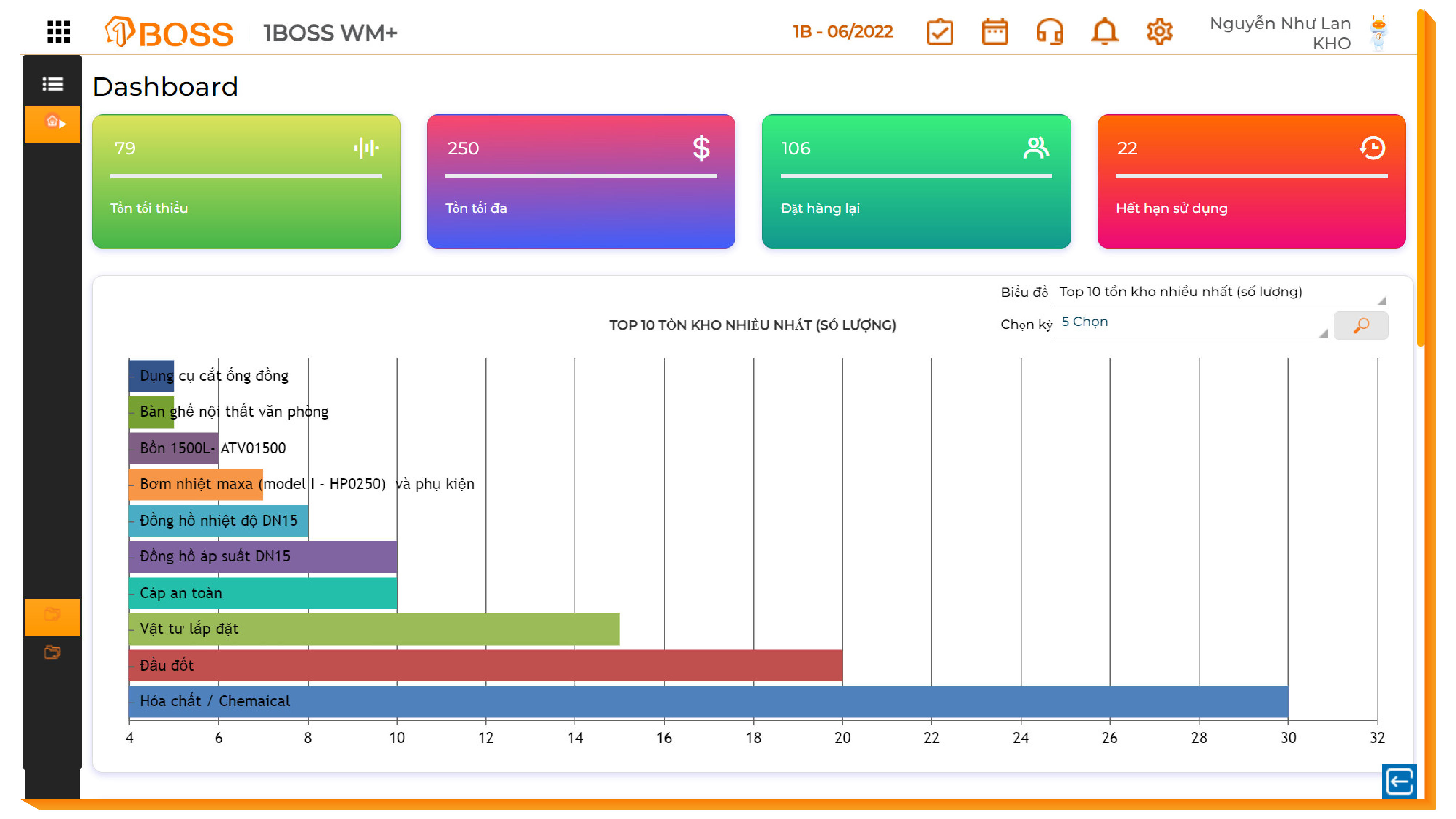 Báo cáo nhập/xuất/chuyển/tồn kho theo nhiều tiêu chí như thời gian, kho, mặt hàng, đối tượng,… Báo cáo nhật ký kiểm kê